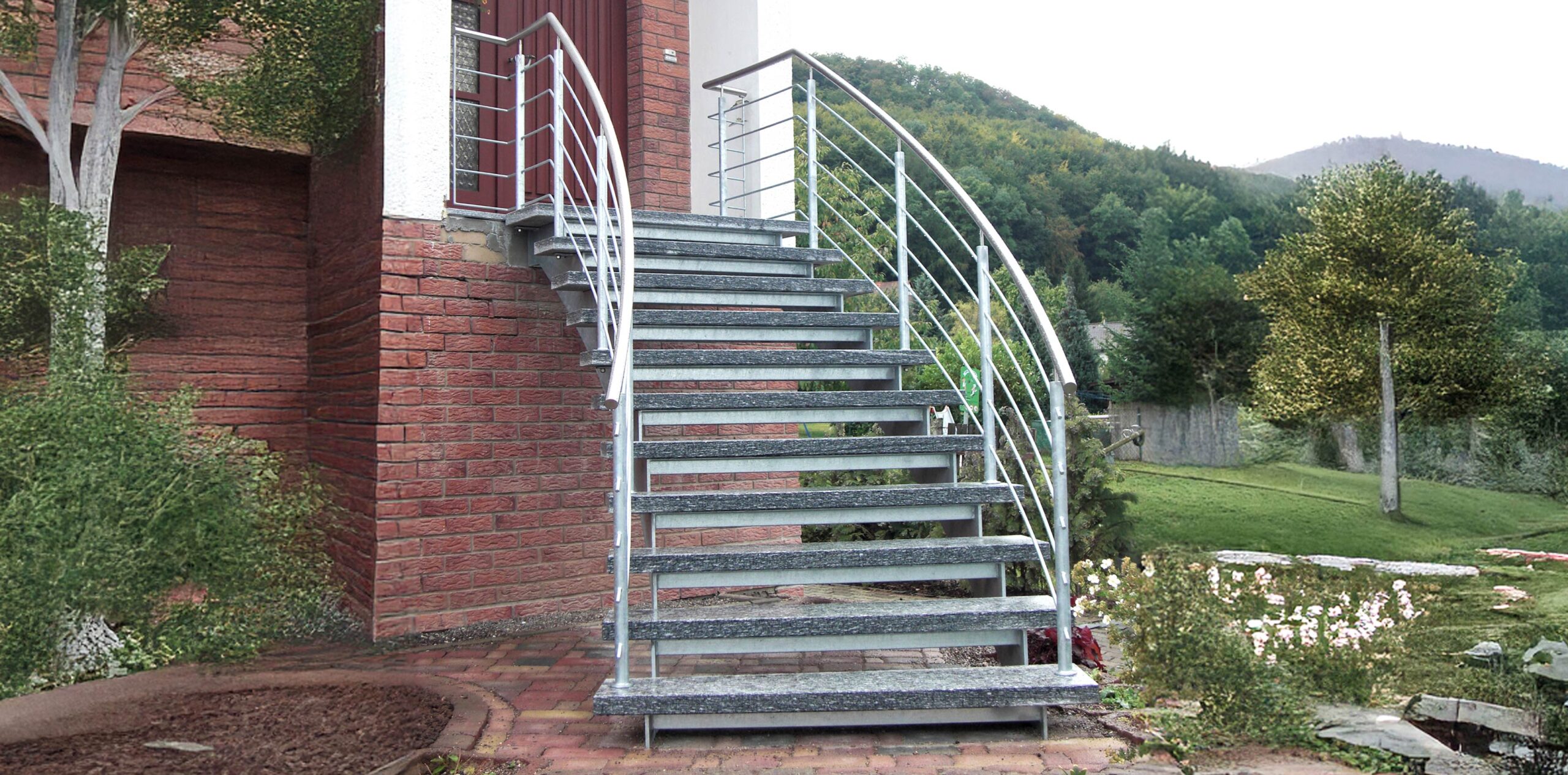 Maßgeschneiderte Bogentreppen für den Außenbereich