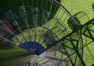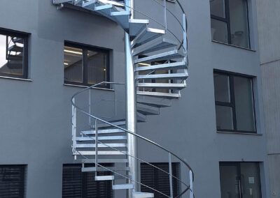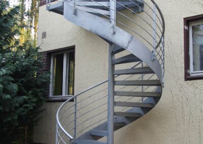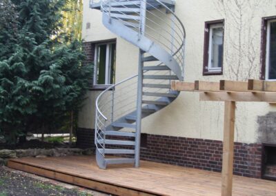 Als erfahrener Hersteller fertigt Treppen-Partner Spindeltreppen, die in Höhe und Durchmesser variabel sind und sich auch auf kleinstem Raum harmonisch einfügen. Aus feuerverzinktem Stahl gefertigt, sind unsere Außenspindeltreppen langlebig, witterungsbeständig und verbinden Robustheit mit eleganter Optik.