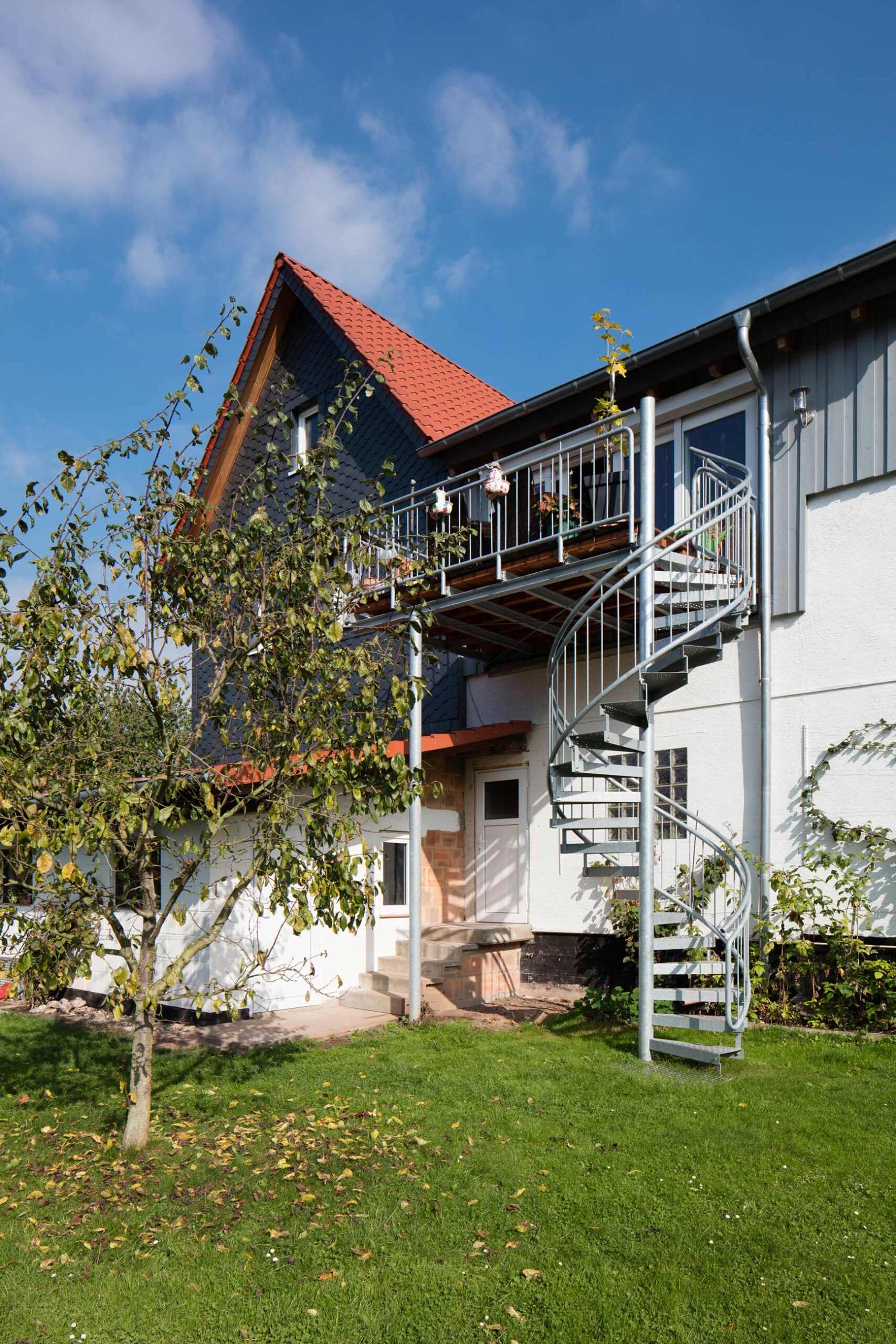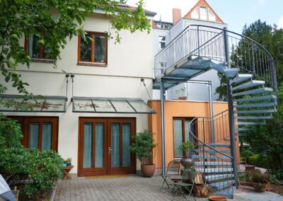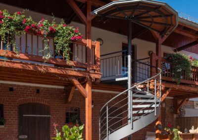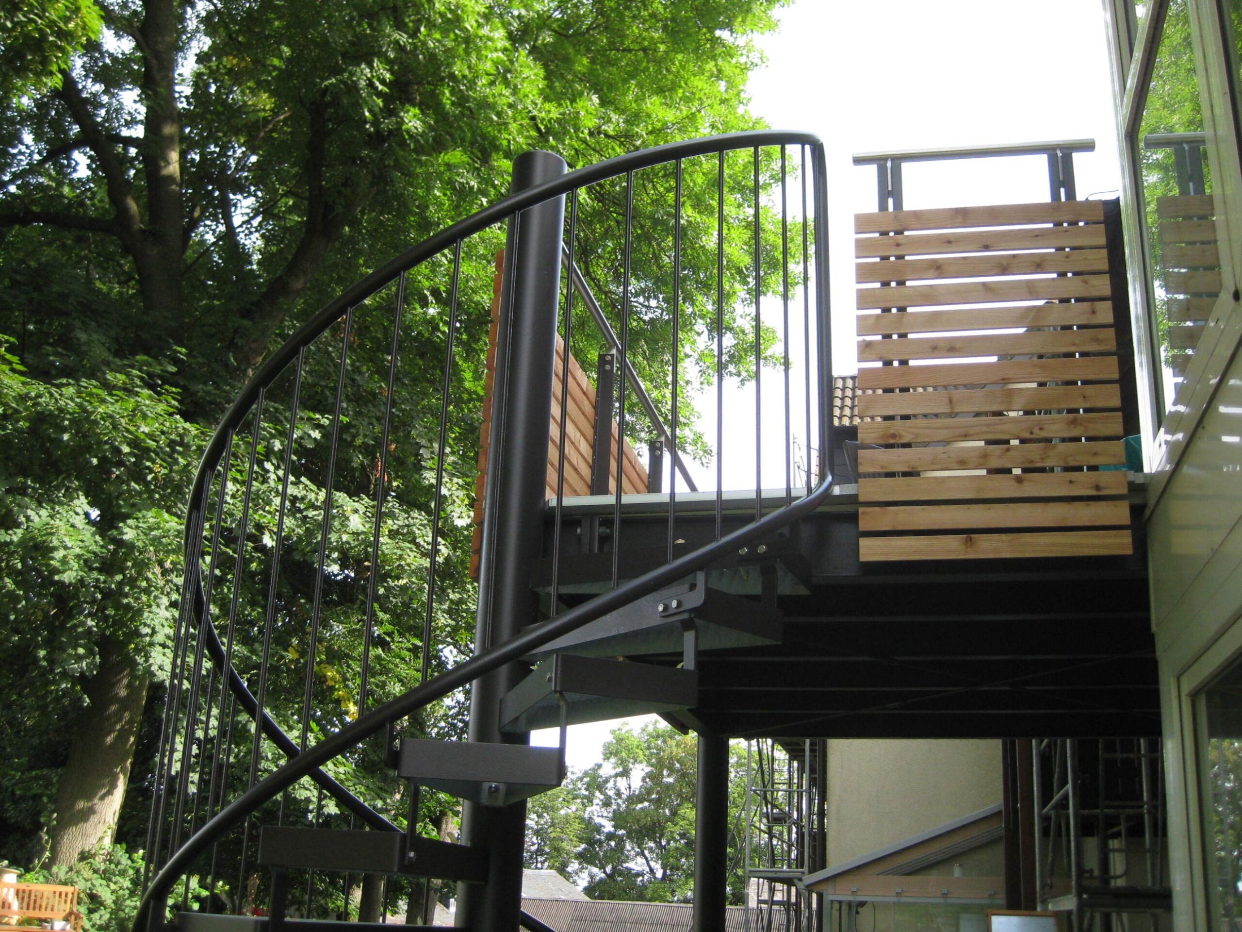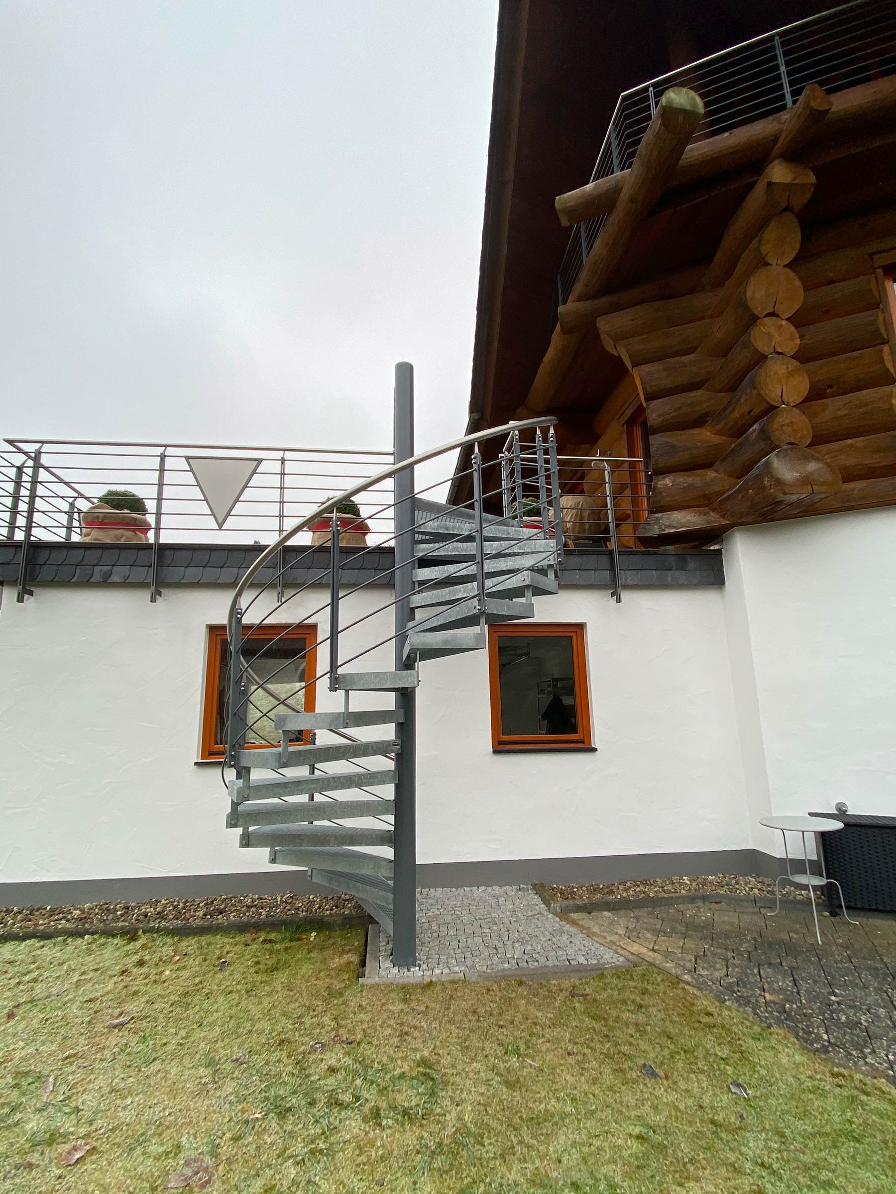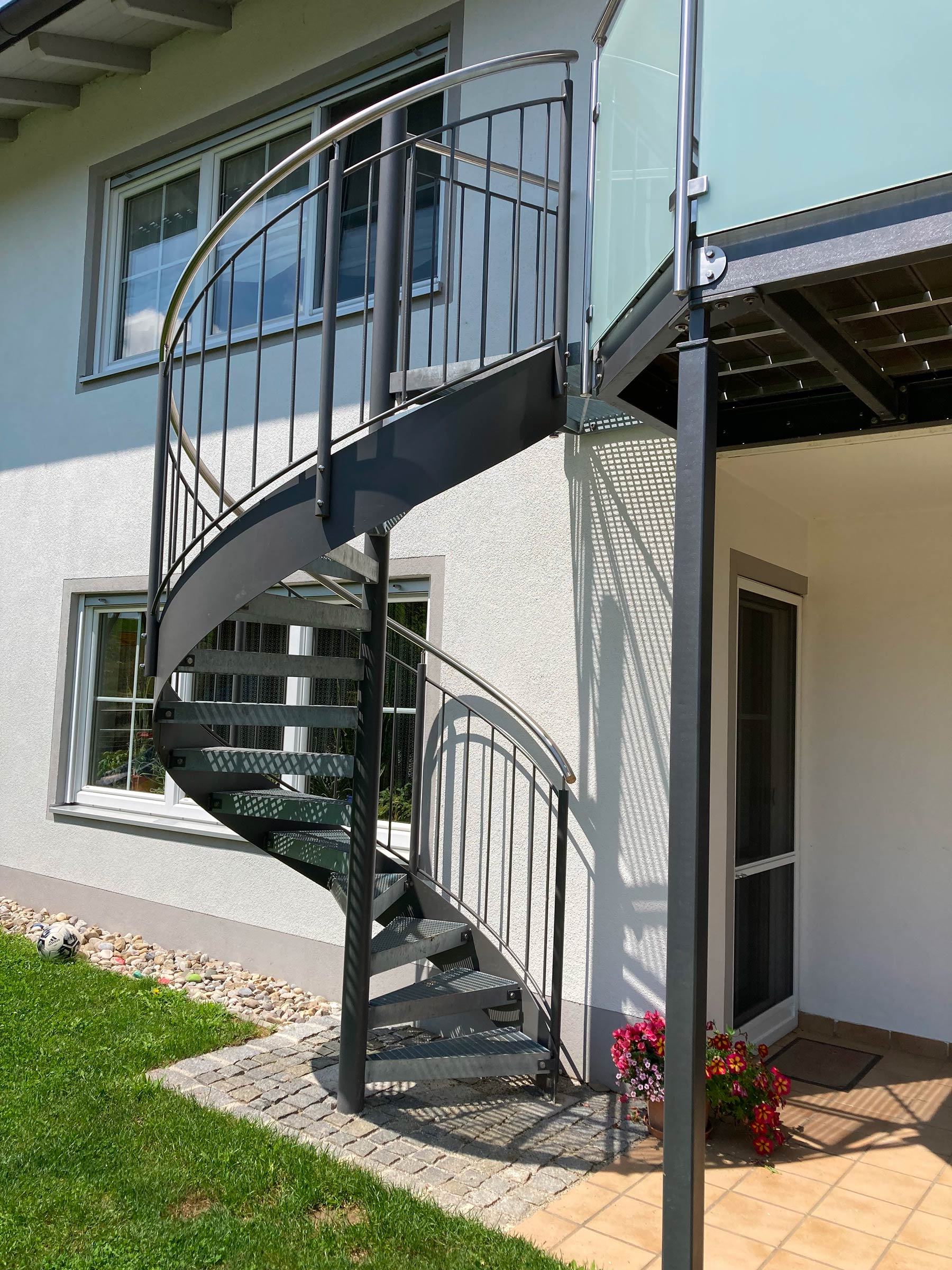 Spindeltreppen für außen – platzsparend, robust, elegant