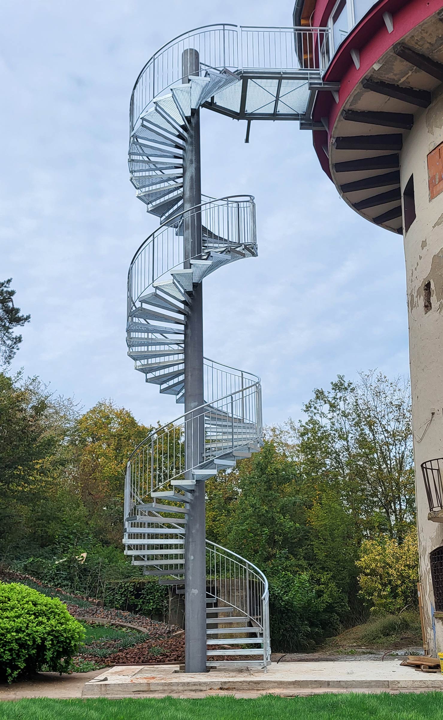 Ein Treppenturm aus Stahl ist die ideale Lösung, wenn es um sichere, langlebige und platzsparende Aufgänge im Außenbereich geht. Ob als Fluchttreppe, Zugang zu oberen Etagen oder Verbindung verschiedener Gebäudeteile – Treppentürme vereinen Funktionalität mit durchdachtem Design. Dank ihrer klaren Struktur wirken sie robust, modern und fügen sich harmonisch in unterschiedliche Architekturkonzepte ein.