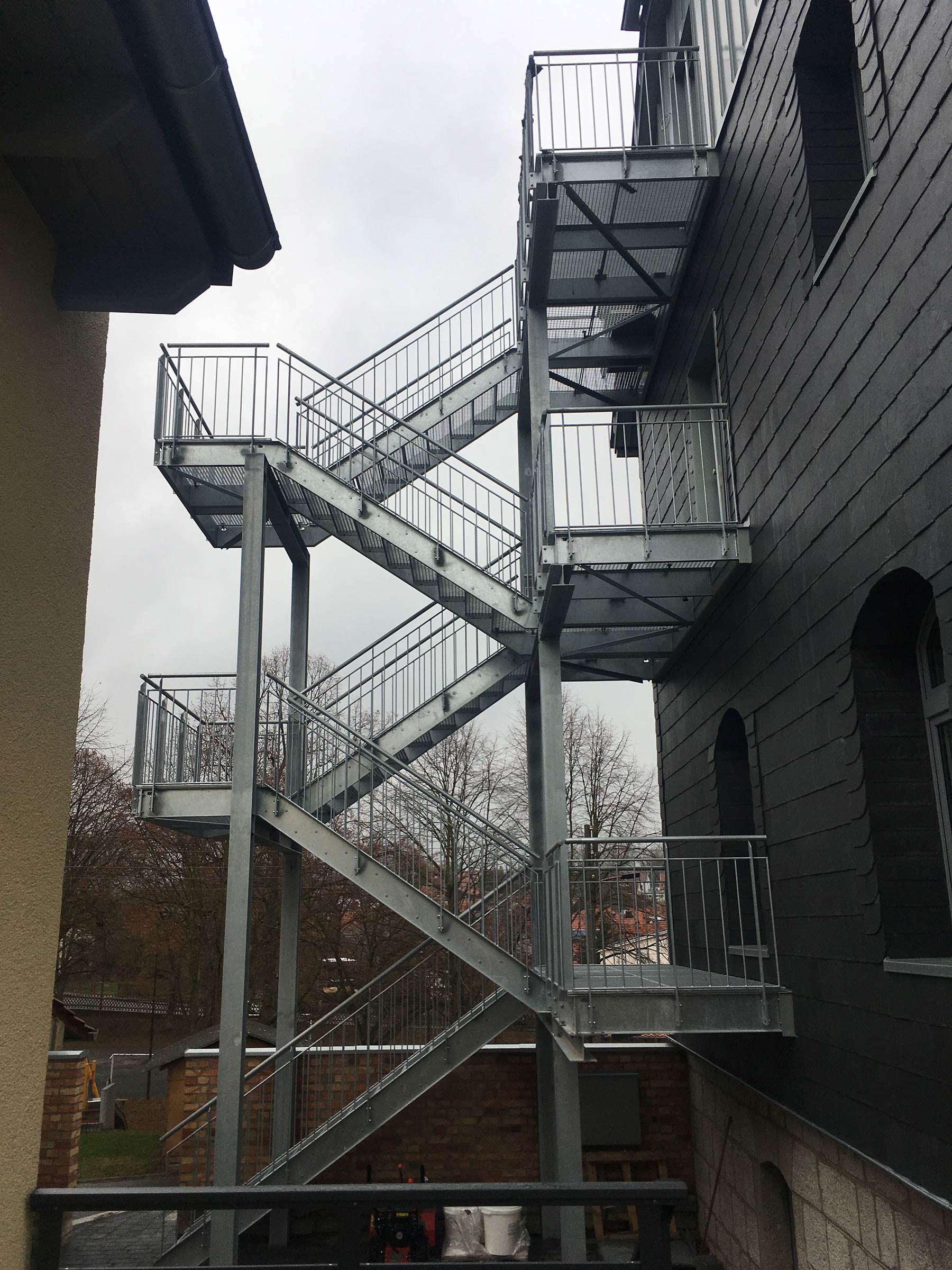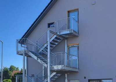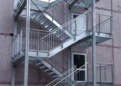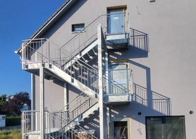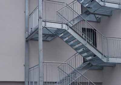 Unsere Treppentürme lassen sich auf Wunsch architektonisch an das Gebäude anpassen, damit sie sich harmonisch ins Gesamtbild einfügen und nicht als technischer Zusatz wirken.