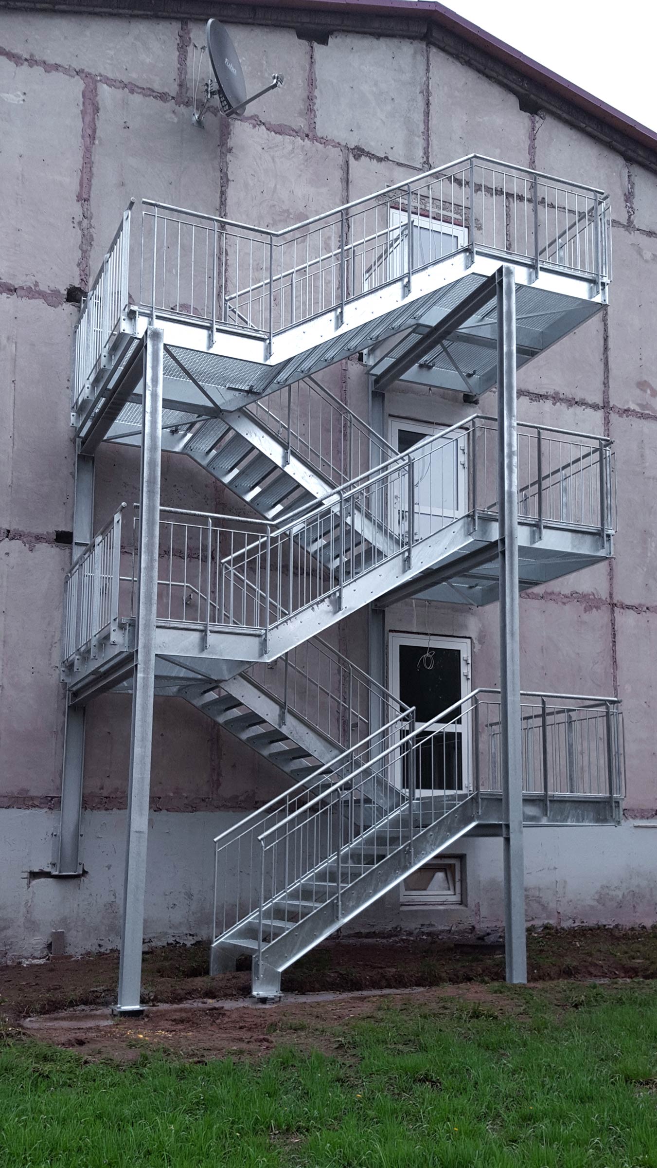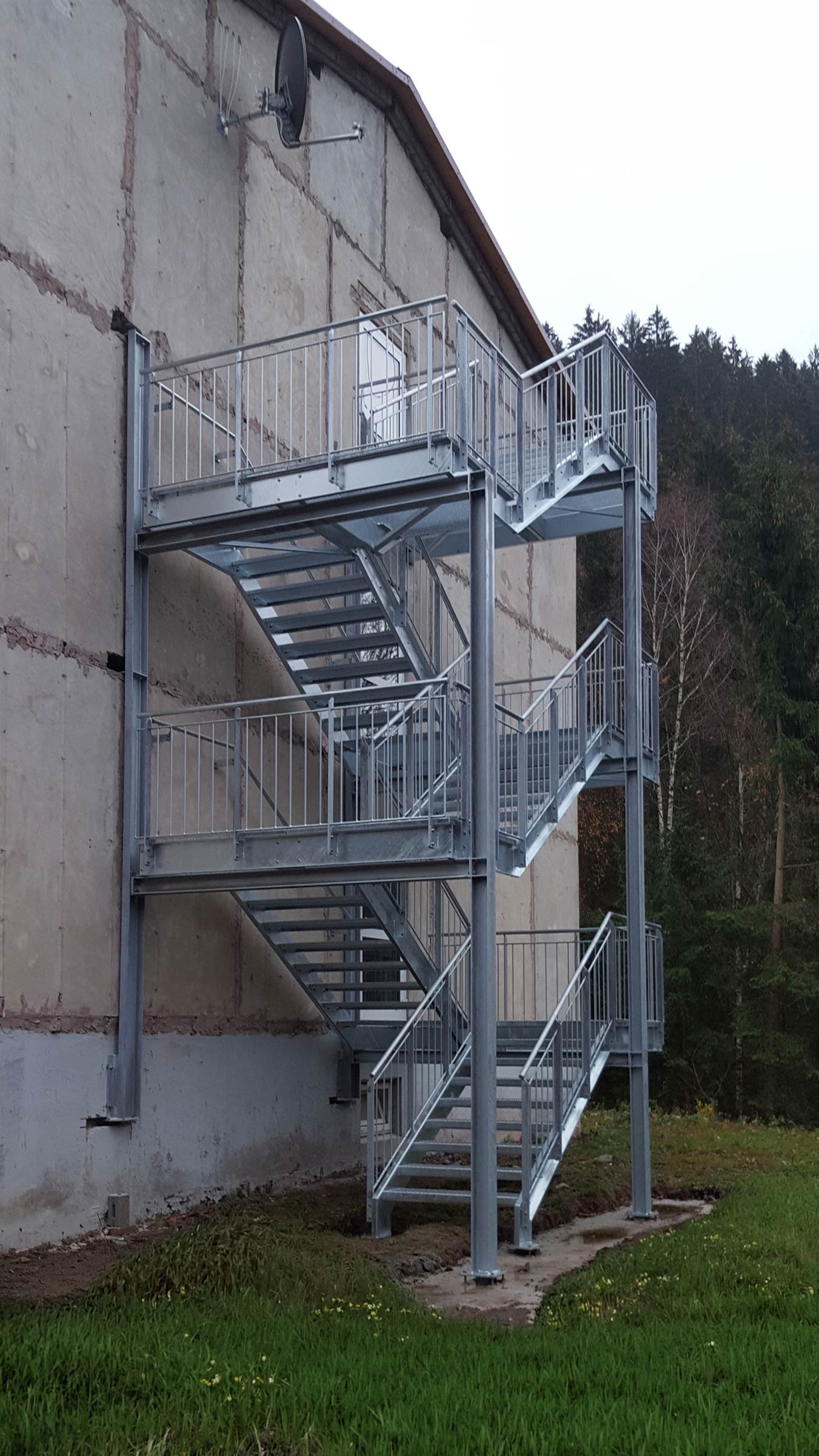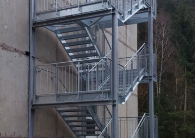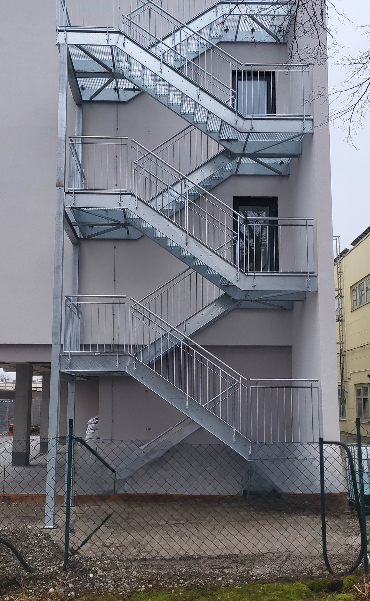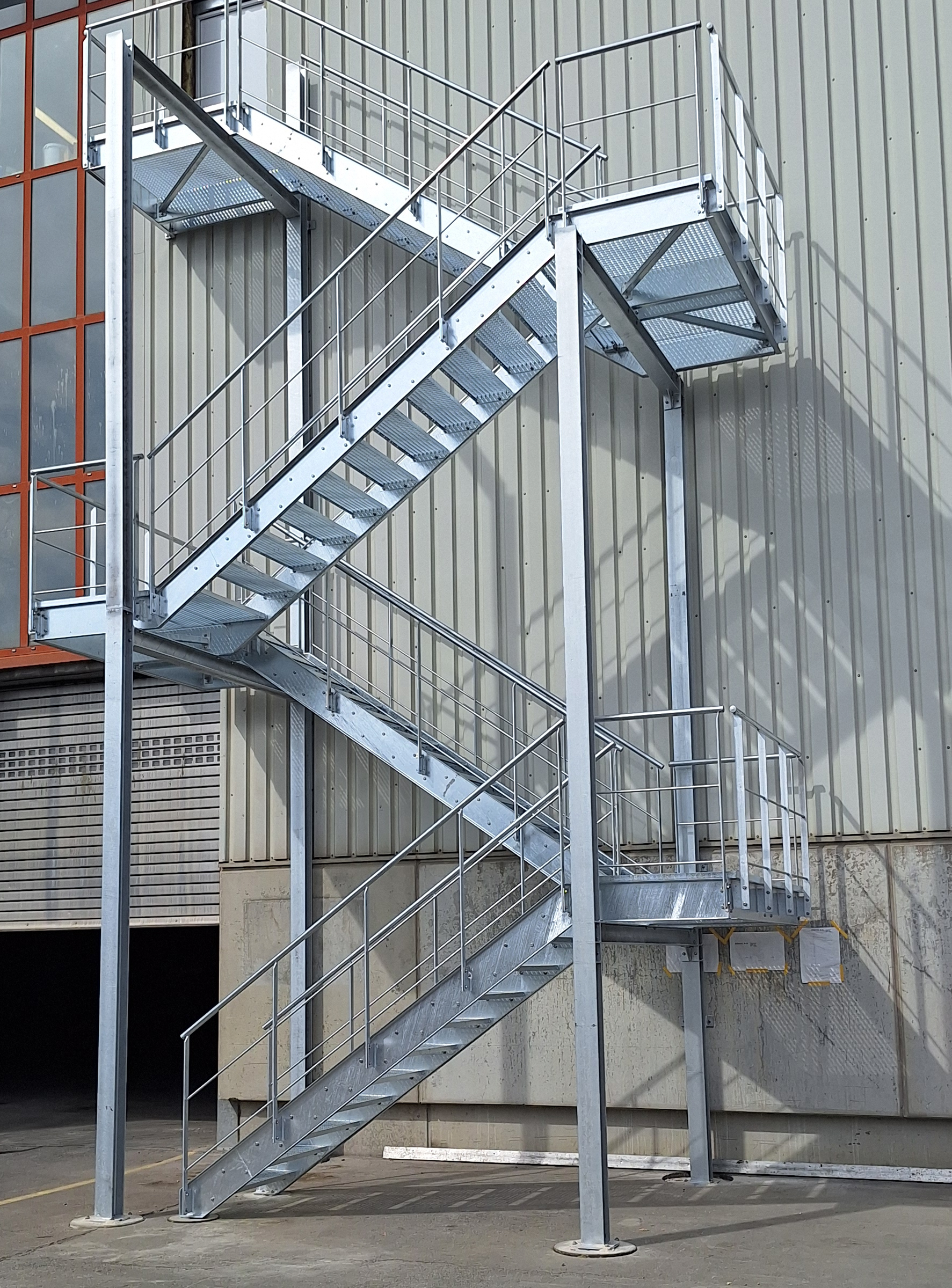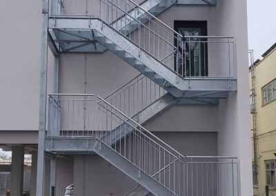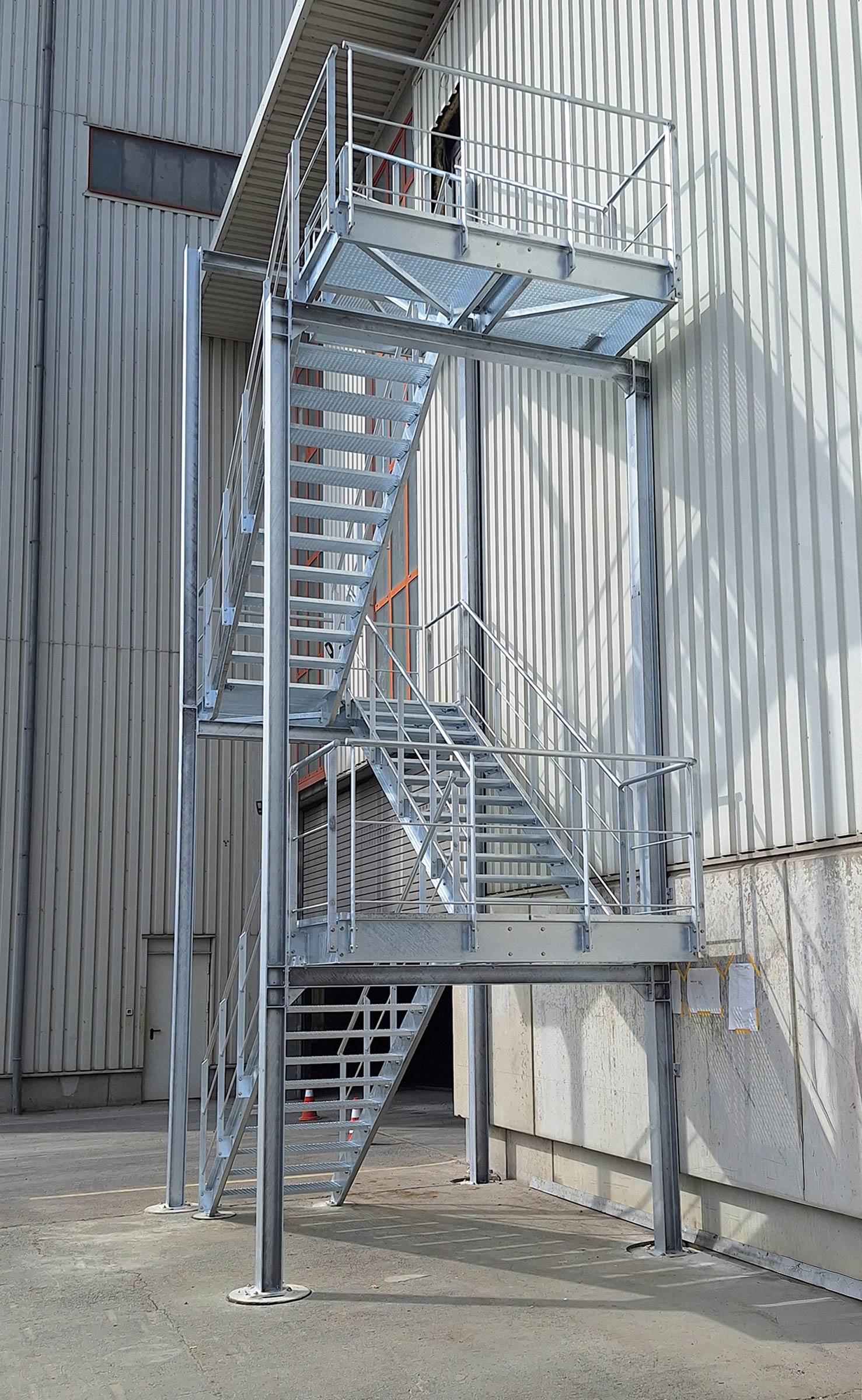 Treppentürme sind echte Arbeitstreppen – geschaffen für hohe Belastung und dauerhaften Einsatz. Besonders häufig kommen sie bei Schulen, öffentlichen Einrichtungen, Bürogebäuden oder Industriebauten zum Einsatz, wo ein zweiter Fluchtweg erforderlich ist.