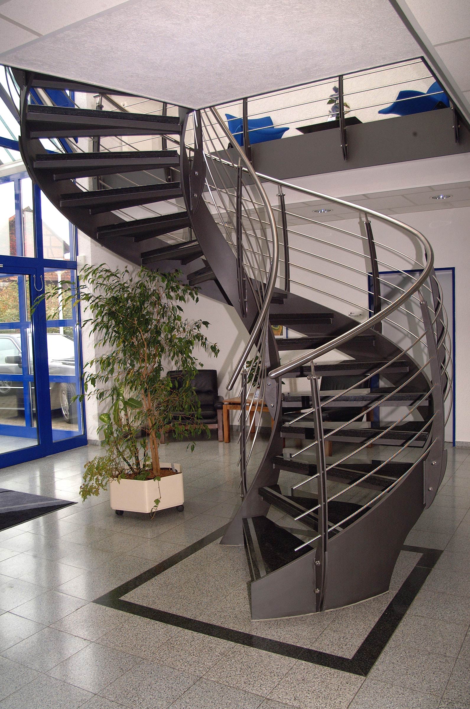 Ob im Foyer, in Ausstellungsräumen oder repräsentativen Büroetagen: Die Bogentreppe zieht Blicke auf sich und unterstreicht den Charakter Ihres Unternehmens.