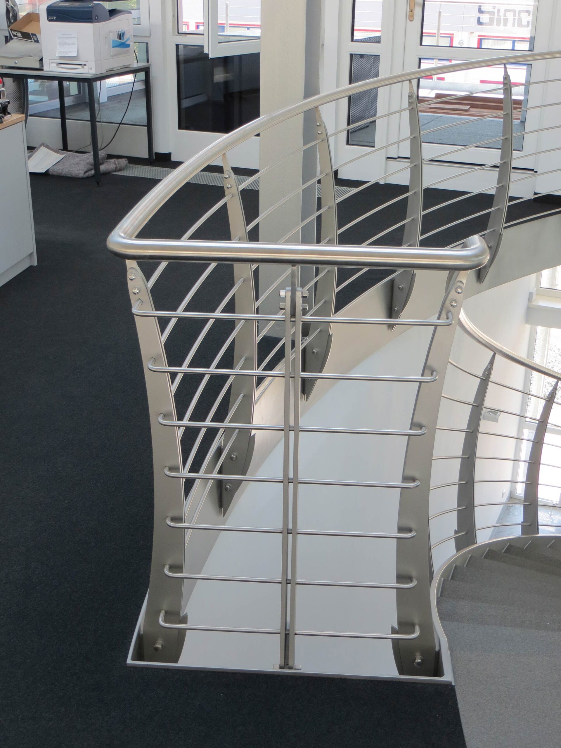 Bogentreppe als Geschäftstreppe – Dynamik und Eleganz im Raum