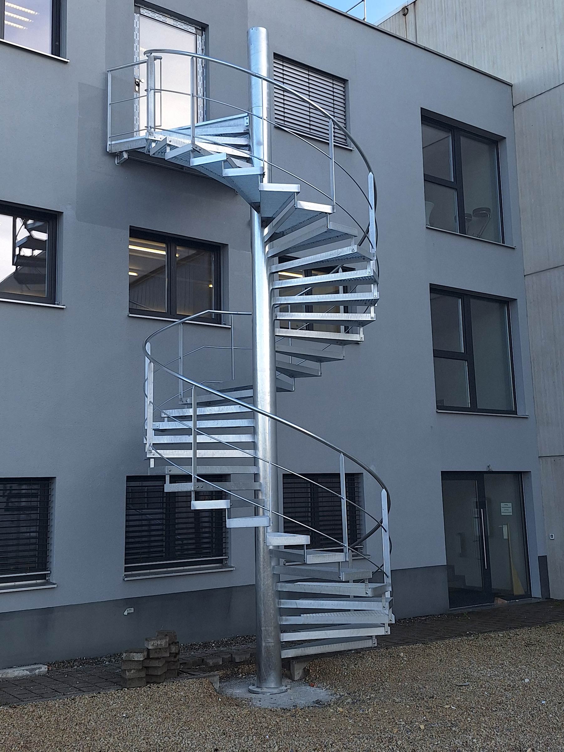 Eine Spindeltreppe ist die ideale Wahl für Unternehmen, die Design und Funktion verbinden möchten. Durch ihre elegante, spiralförmige Bauweise fügt sie sich harmonisch in moderne Geschäftsarchitekturen ein – ob als repräsentative Foyertreppe oder als platzsparende Außentreppe für den Fluchtweg.