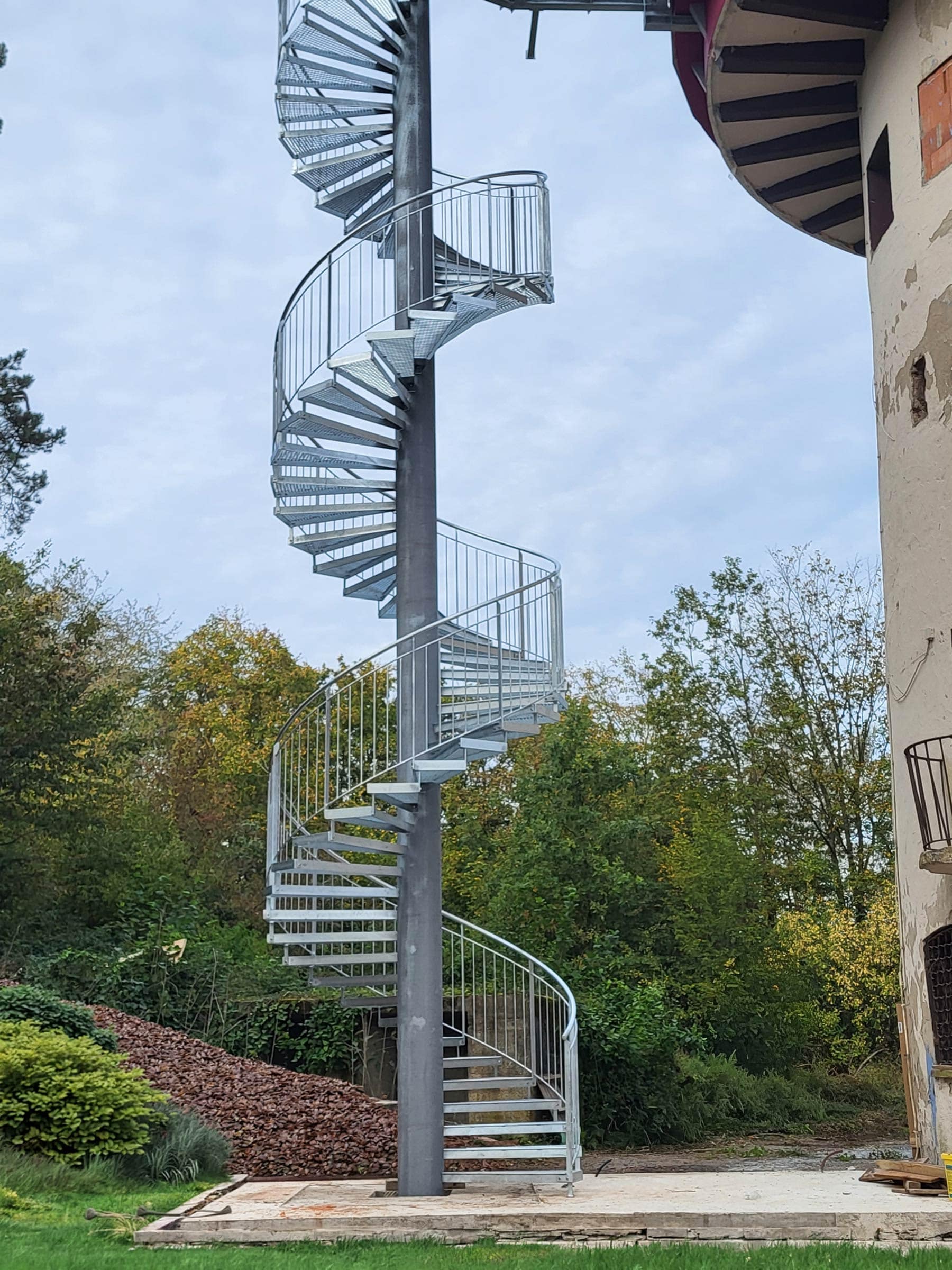 Ein Treppenturm aus Stahl ist die ideale Lösung, wenn es um sichere, langlebige und platzsparende Aufgänge im Außenbereich geht. Ob als Fluchttreppe, Zugang zu oberen Etagen oder Verbindung verschiedener Gebäudeteile – Treppentürme vereinen Funktionalität mit durchdachtem Design. Dank ihrer klaren Struktur wirken sie robust, modern und fügen sich harmonisch in unterschiedliche Architekturkonzepte ein.