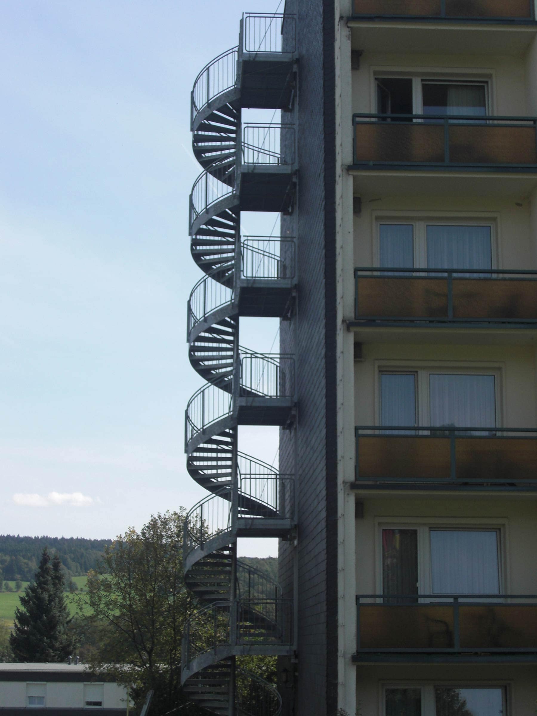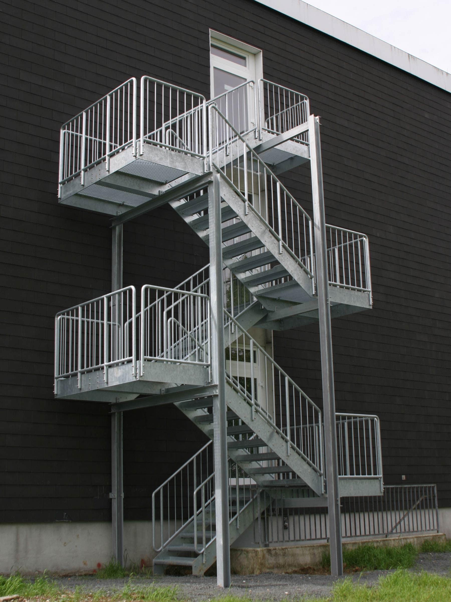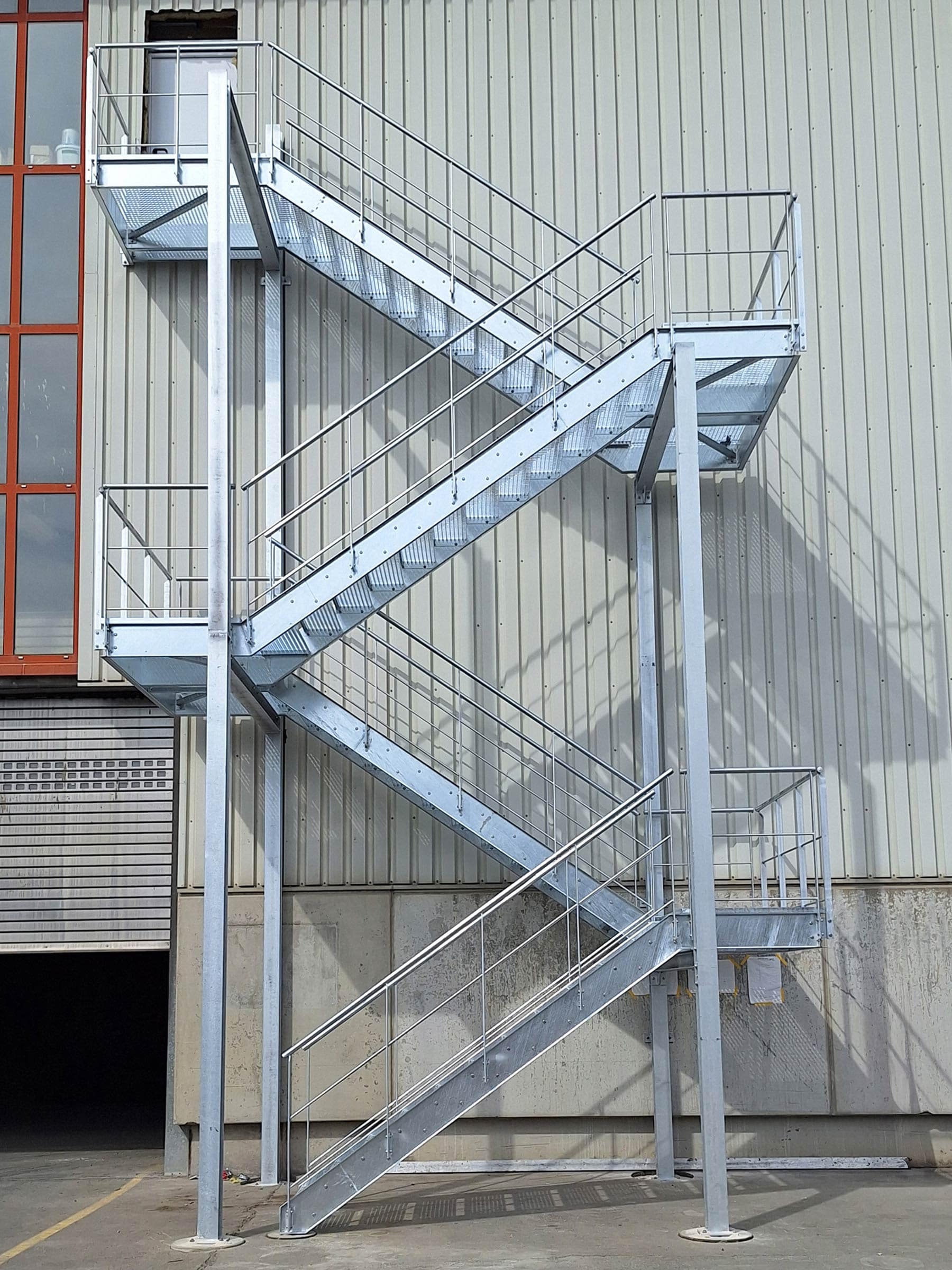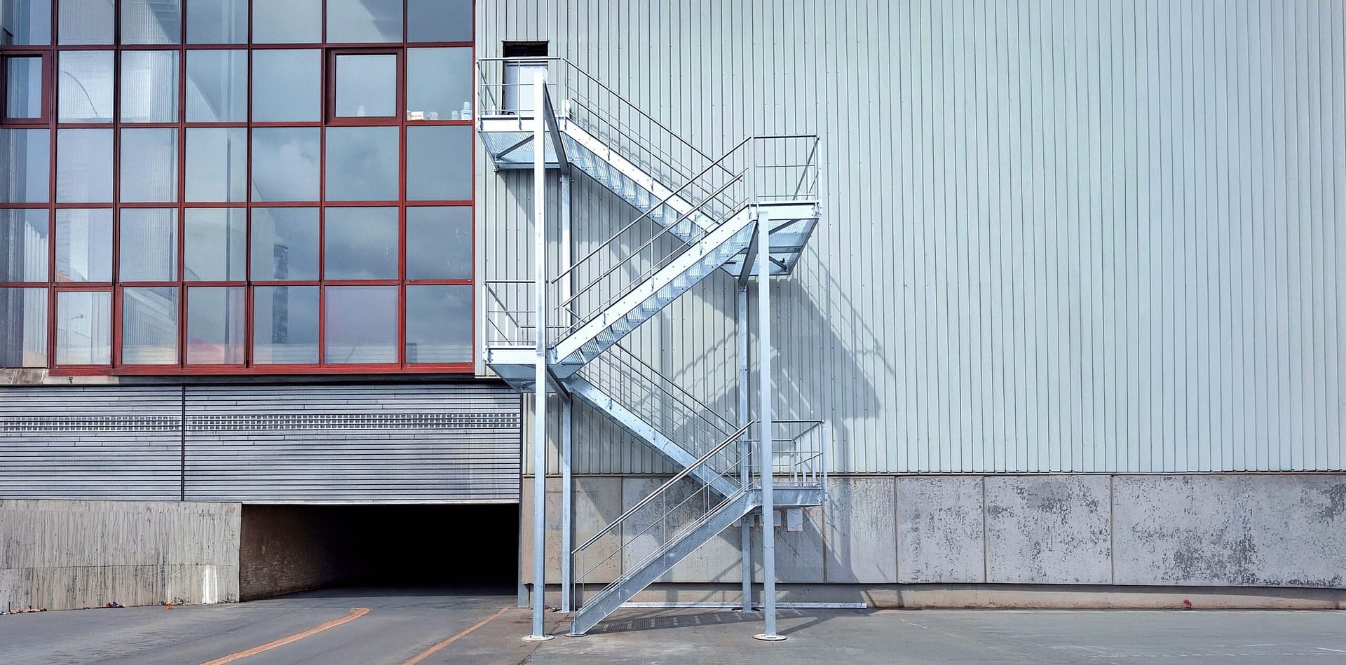 Treppentürme sind echte Arbeitstreppen – geschaffen für hohe Belastung und dauerhaften Einsatz. Besonders häufig kommen sie bei Schulen, öffentlichen Einrichtungen, Bürogebäuden oder Industriebauten zum Einsatz, wo ein zweiter Fluchtweg erforderlich ist.