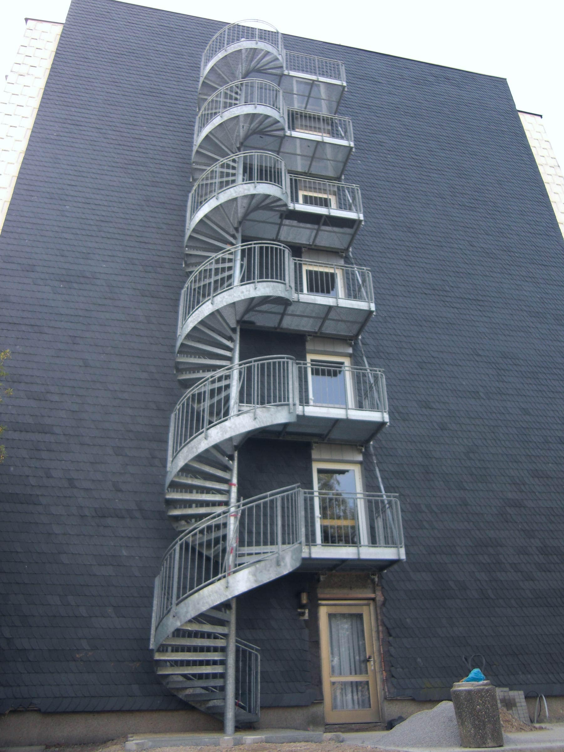 Unsere Treppentürme lassen sich auf Wunsch architektonisch an das Gebäude anpassen, damit sie sich harmonisch ins Gesamtbild einfügen und nicht als technischer Zusatz wirken.